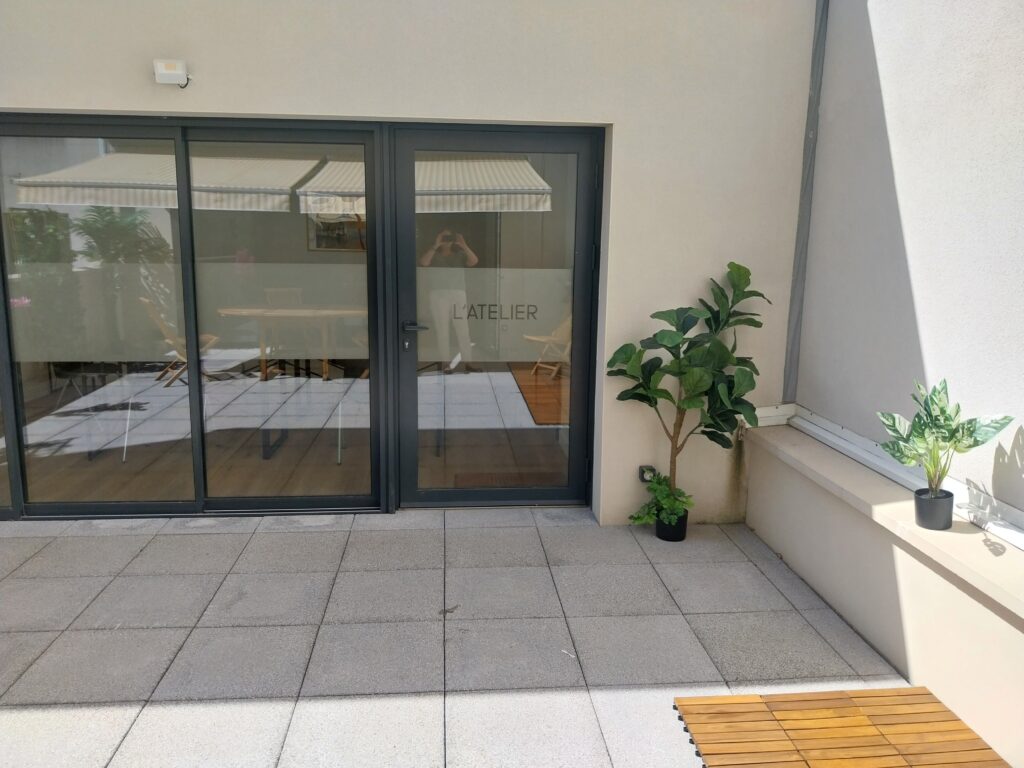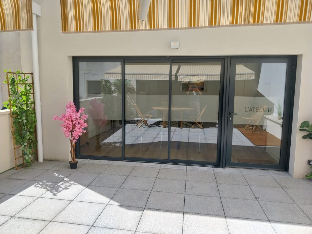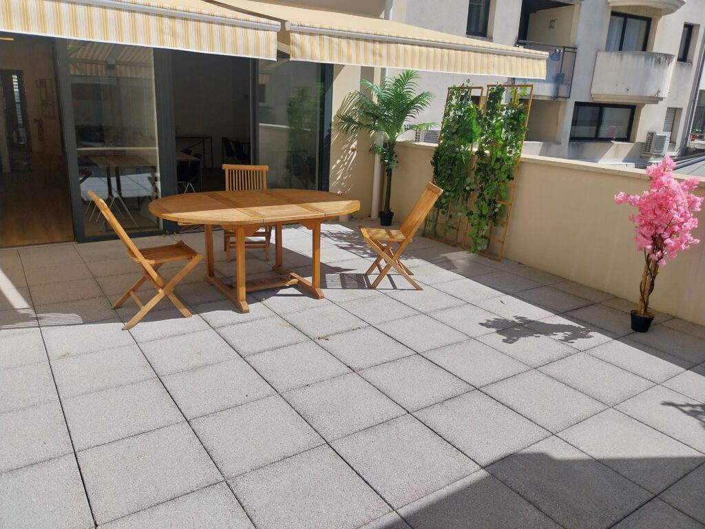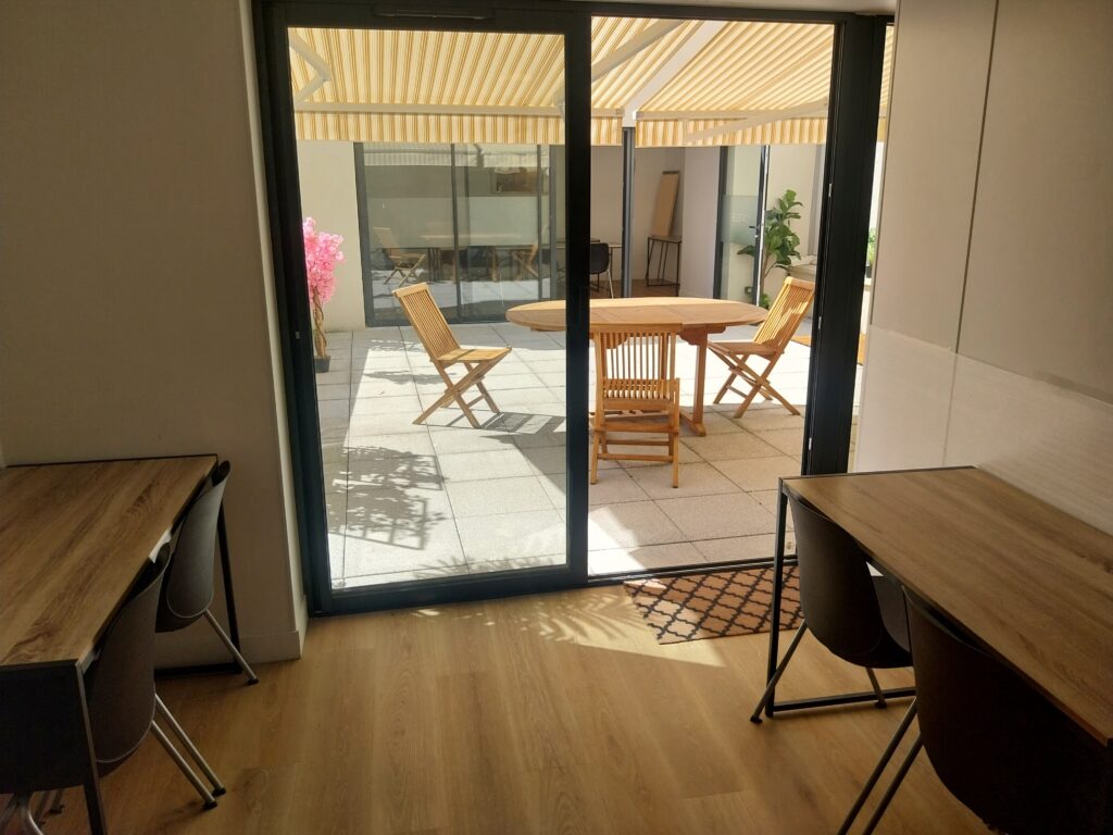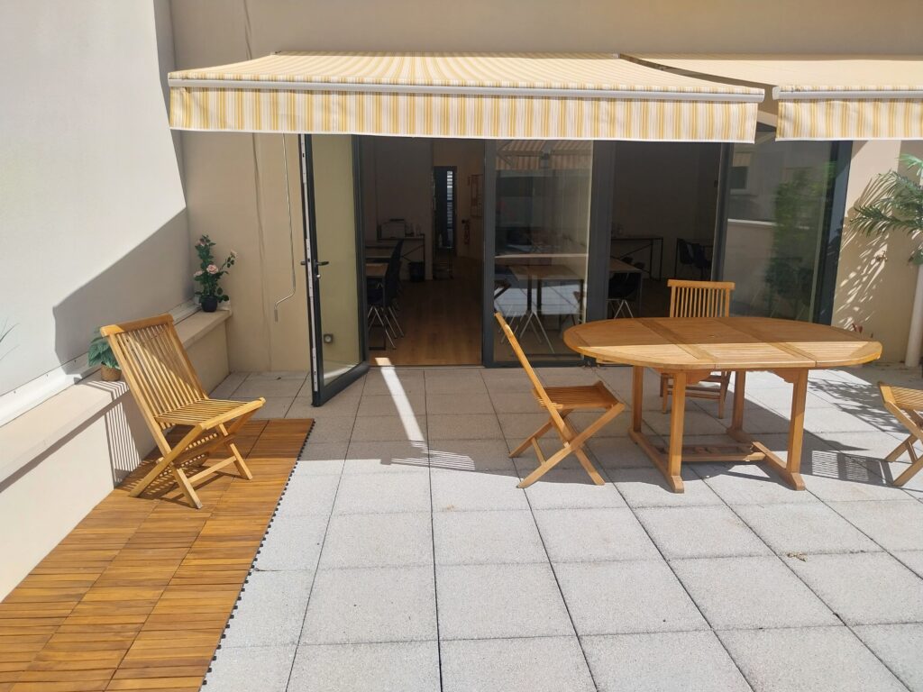 Salle privée et dans un endroit discret du centre, salle ouvrant sur une terrasse intérieure côté cour. Mise à disposition également avec la salle.